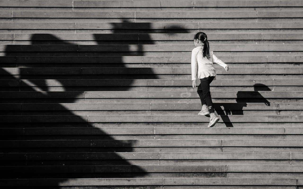 흑백의 대조가 뚜렷한 이 사진은 어린 소녀가 계단을 오르는 순간을 포착하였습니다. 강렬한 햇빛 아래에서 소녀의 실루엣이 계단에 길게 드리워져 있으며, 그 그림자는 마치 독립적인 존재처럼 보입니다. 소녀는 미래를 향해 한 걸음씩 나아가는 모습으로, 희망과 전진을 상징하는 듯합니다. 사진은 움직임과 정지, 빛과 그림자의 상호작용을 통해 단순한 일상의 순간을 예술적으로 변환시킨 예입니다.